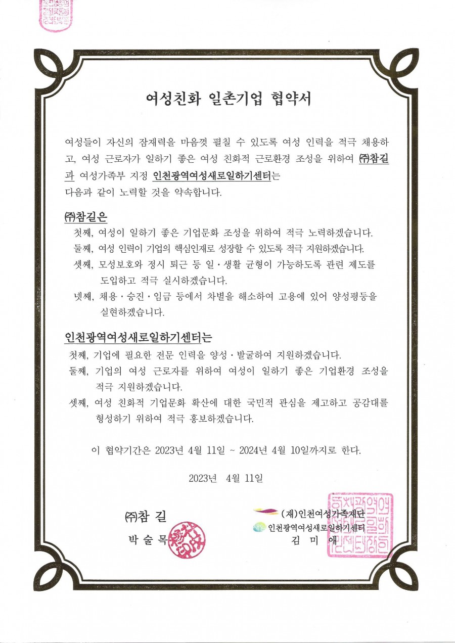 참길-인천여성가족재단 여성친화 일촌기업 협약 체결 페이지 정보 작성자 최고관리자 작성일23-04-12 11:19 조회27,660회 댓글0건 관련링크 본문 참길-인천여성가족재단 여성친화 일촌기업 협약 체결 댓글목록 등록된 댓글이 없습니다. 이전글 다음글 목록